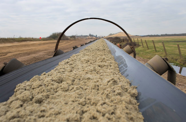 La industria de la construcción utiliza bandas transportadoras en diversas aplicaciones para facilitar el movimiento eficiente de materiales a granel como tierra, arena, grava, cemento, escombros y otros materiales de construcción desde un lugar a lo largo de un sitio de construcción.