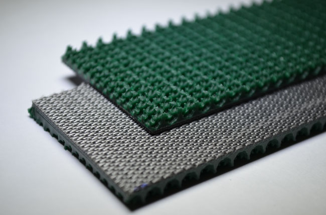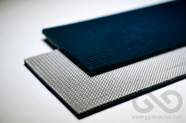 Las Bandas con cobertura grabada son utilizadas para transporte inclinado, elevación o descenso de productos envasados o a granel.