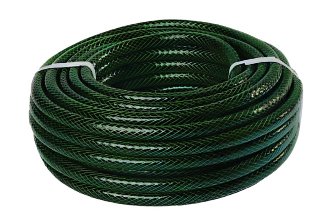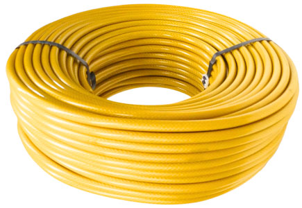 Manguera para riego profesional, fabricada en 3 capas con refuerzo de poliéster en espiral para una mayor resistencia y durabilidad.